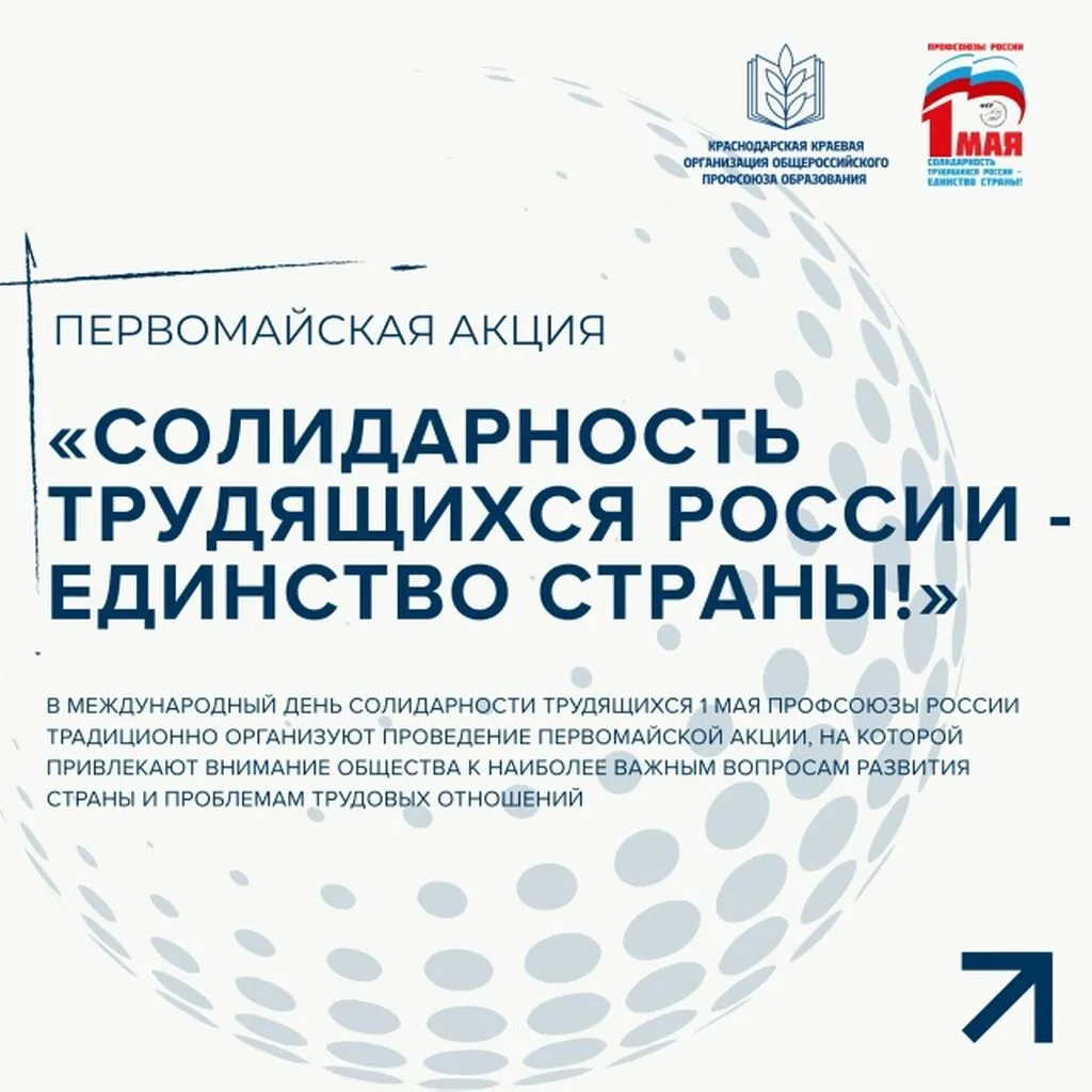 В Международный день солидарности трудящихся 1 мая Профсоюзы России традиционно организуют проведение Первомайской акции, на которой привлекают внимание общества к наиболее важным вопросам развития страны и проблемам трудовых отношений, призывают к уважению человека труда, поддерживают требования эффективной занятости населения, безопасного труда и справедливой социальной политики.